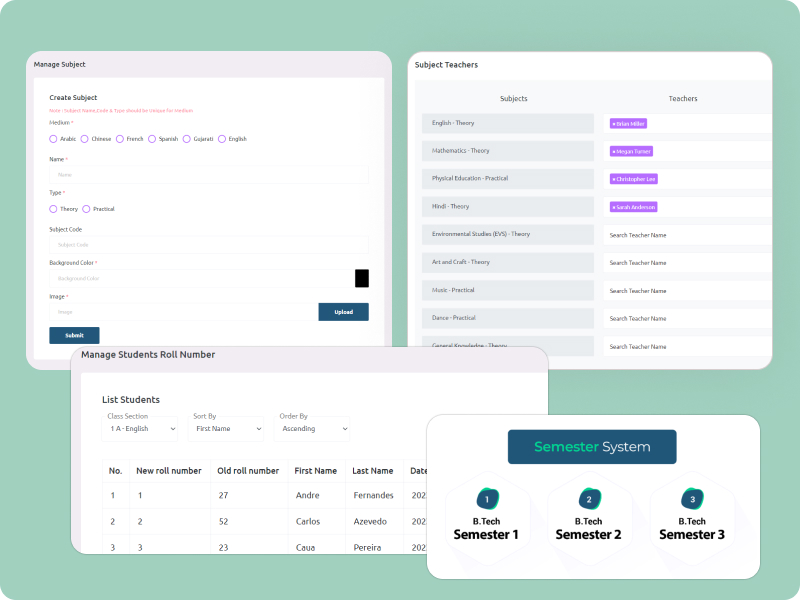 Academy Setup Made Easy Simplify academy management with our all-in-one solution. From creating mediums, subjects, and semesters to managing shifts, etc.